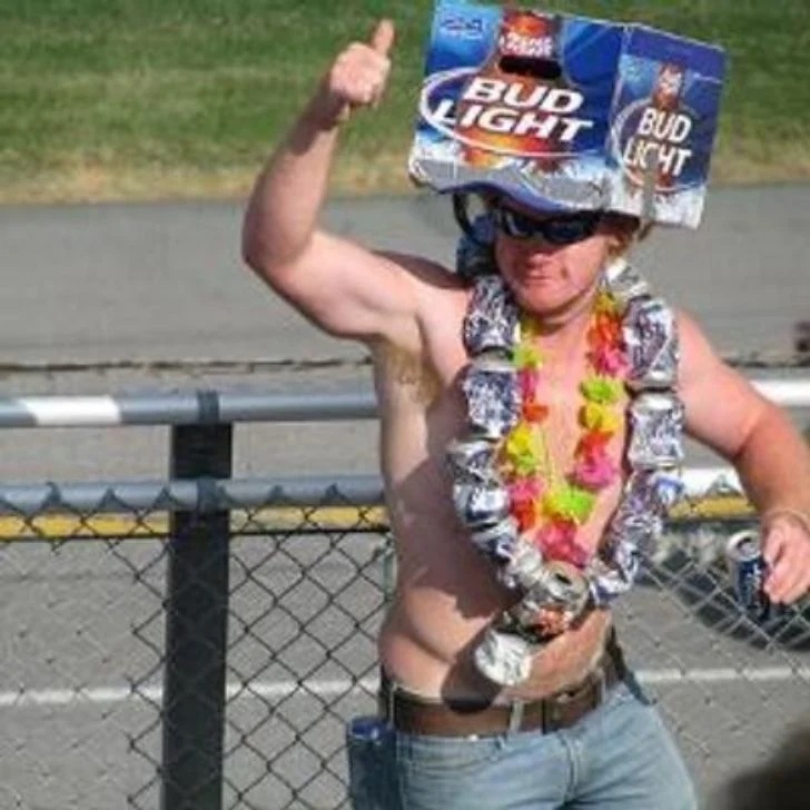 不容錯過的運動時刻 百威淡啤粉絲 Advertisements 許多體育迷會穿著引人注目的服裝,來為他們喜愛的隊伍加油。但這位老兄,看起來他對啤酒的渴望,比對即將到來的賽車比賽的期待還要強烈。他最愛的啤酒品牌是百威淡啤 (Bud Light)。 Advertisements 上頁下一頁 他把一箱啤酒紙盒當成頭飾戴在頭上——這真是個聰明的方法,可以隨時取得他最愛的飲品,同時又能抵抗強烈的陽光。而且,他也不浪費任何空罐——他把空罐串成項鍊戴在脖子上。真是既創新,又總是走在飲品潮流的最前端。 Advertisements PREV NEXT PAGE