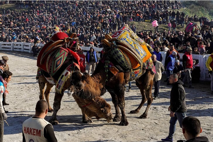 トルコのエーゲ海地方では、雄大なラクダたちが本格的なレスリング試合で互いにぶつかり合います。これは地下で行われる奇妙なものではなく、数千人のファンがキャメルレスリング選手権に詰めかけ、お気に入りのコブを持つ挑戦者たちを応援します。ラクダは何ヶ月も訓練され、怪我を防ぐために試合は慎重に審判されます。