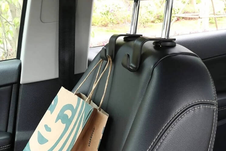 透過將一些汽車掛鉤或登山扣固定在乘客座椅的背面,您可以掛起所有重要的物品。 這樣,您就可以保持整潔,並將所有東西放在同一個地方。