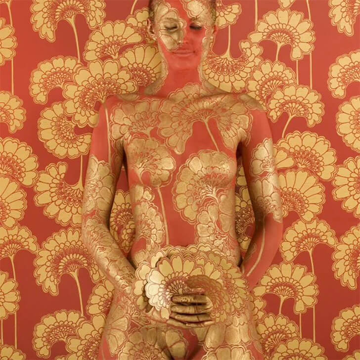 エマ・ハックはアデレード出身のアーティストで、ボディペインティングと背景パターンを組み合わせた作品で知られています。彼女のペイントは非常に見事で、人物の体を背景パターンに溶け込ませ、まるで壁と一体化しているかのように見せます。彼女の有名なスタイルは2000年代初頭に、フローレンス・ブロードハーストのフローレンス・タペストリーからインスピレーションを得て生まれました。