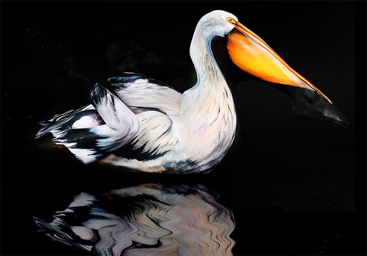 ボディペインティングは芸術の一形態です。キャンバスやスケッチブックの代わりに、人間の体が才能を表現する媒体として使用されます。ボディペインティング(と素晴らしい写真撮影)を通して、上の画像の体はペリカンのように見えるように変身しました。