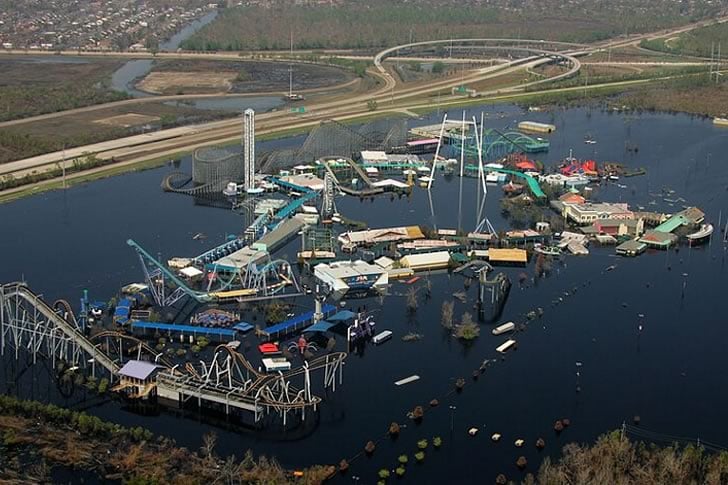 한때 웃음과 즐거움으로 가득했던 활기찬 명소였던 뉴올리언스의 식스 플래그 테마파크는 현재 버려지고 침수된 채 서 있습니다. 이 잊혀지지 않는 이미지는 2005년 허리케인 카트리나가 이 지역을 휩쓴 지 불과 몇 주 후에 촬영되었습니다. 드론으로 촬영된 공중 뷰는 물에 잠긴 놀이기구와 으스스한 정적을 보여주며, 한때 사랑받던 놀이터가 종말론적인 장면으로 변모했습니다.