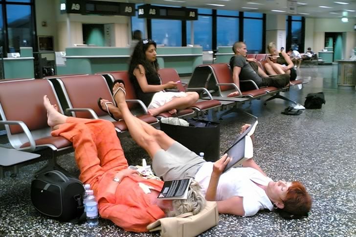 機場向來不是以舒適氛圍著稱的地方,但這兩位女士顯然沒有收到通知,或者選擇完全無視。她們沒有忍受機場裡僵硬的椅子,反而把航站大廳的地板變成了自己的私人閱讀休憩區。雙腿舒適地交纏著,手裡捧著書,她們成功地在一個大多數人只想逃離喧囂和延誤的空間裡找到了寧靜。