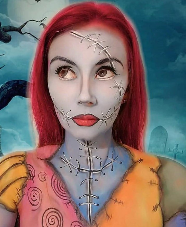 An artist is now taking on this darkly fairytale world: she portrays herself as Sally, the hybrid creature composed of flesh and fabric, inspired by Frankenstein’s Monster. As a toxicologist in the fictional world of Halloween Town, she experiments with poisons – and also possesses the gift of having visionary insights into the future. Her gruesome barbed wire, the tattered dress, and melancholic eyes testify to a beauty rooted in vulnerability.