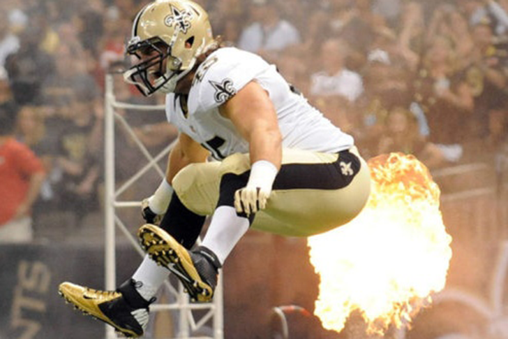 격렬한 Saints 경기 중, 한 선수가 멋진 점프 동작을 선보였는데, 그 뒤로 마치 “불타는 방귀”가 나오는 것처럼 보였습니다. 물론, 배경의 네온사인 위치 때문에 생긴 착시 현상입니다.