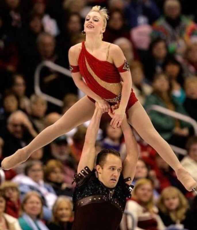Nel pattinaggio artistico, coordinazione perfetta e fiducia sono essenziali, ma a volte basta un piccolo errore per mandare all’aria un numero. Qui, la ballerina è ancora elegantemente in equilibrio sulle spalle del suo partner, ma le sue mani mostrano già incertezza: un dito fuori posto, una distribuzione della pressione che annuncia l’interruzione.