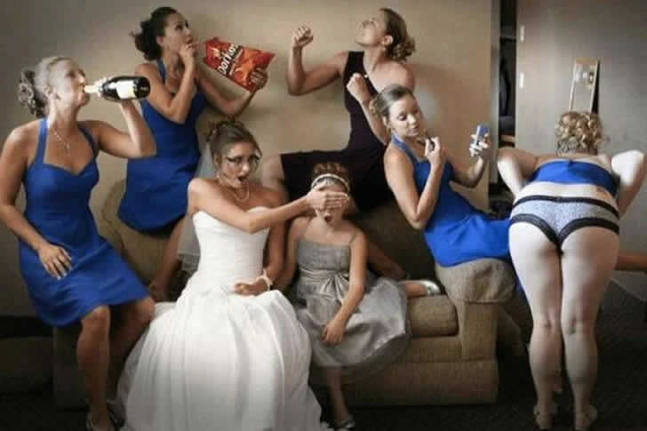 Lors des mariages, l’ambiance peut devenir très animée, les demoiselles et garçons d’honneur testant souvent les limites du décorum. Dans l’image affichée, la fête n’avait pas attendu que le plus jeune de la soirée se retire avant de commencer ses pitreries. Heureusement, la mariée est intervenue, préservant l’innocence de l’enfant d’un geste protecteur, suggérant la nature adulte de la scène.