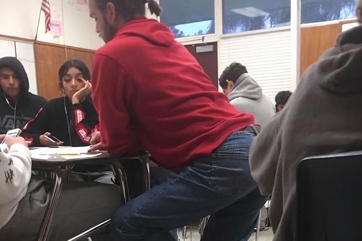 This classroom scene may seem ordinary at first, but one glance at the man in red turns it into something unforgettable. Caught mid-lean with one leg crossed behind the other in an oddly athletic stance, he seems to have mastered the art of balancing like a flamingo doing yoga. It’s unclear whether this pose is a regular part of his teaching style or just an accidental moment of genius body mechanics.