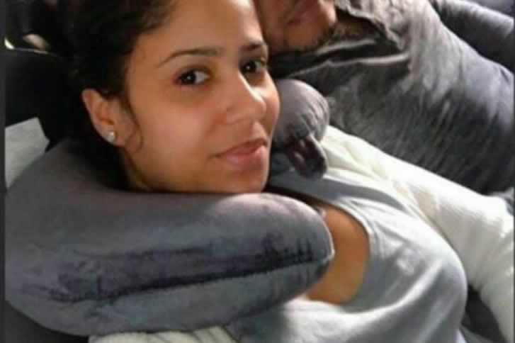 この男性は、公の場で女性に不適切な接触をしているわけではありません。実際、これはただのネックピローで、たまたま男性のジャケットと同じ色だったのです。なぜ彼女の舌が少し出ているのかについては、直接彼女に聞いてみる必要がありますね。