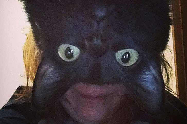キャットウーマンですか?いいえ、ただ猫が偶然にも絶妙なタイミングで写真に入り込んだ女性です。この写真は、猫と人間がまるで一つであるかのような、なんとも可愛くて健全な一瞬を捉えています。
