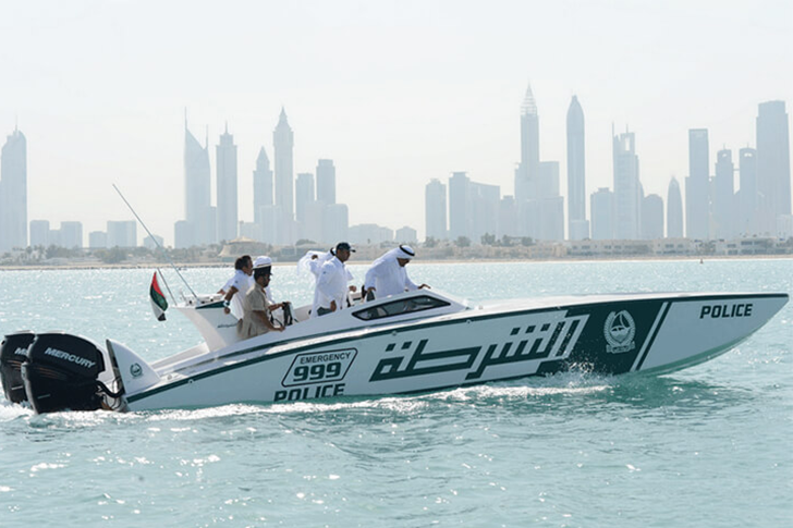 In Dubai überwacht nicht nur die Straßenpolizei die Stadt, sondern auch die Wasserpolizei ihre Gewässer – und das nicht mit gewöhnlichen Booten! Das hier sichtbare Polizeiboot ist ein wahrer Wasserracer: Es kostet 364.000 Euro und wurde von Sheikh Hamdan, dem Kronprinzen von Dubai, spendiert.