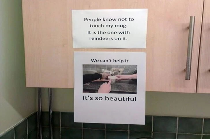 儘管訊息明確,但這類禁令往往會誘使人們去做他們被要求不要做的事情,導致不可避免地誤用他人的馬克杯。