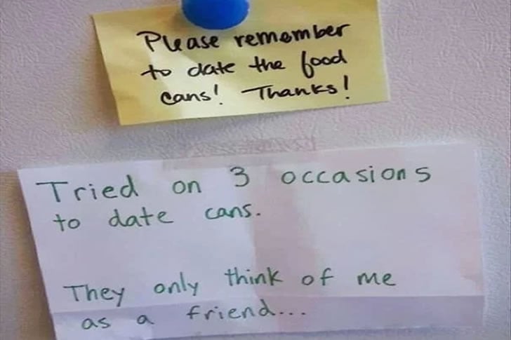 30 則爆笑的「被動式攻擊」留言,它們雖然避免了衝突,卻讓情況更糟 幽默感錯置 Advertisements 有些人習慣用幽默來化解任何尷尬的局面。雖然這份特質通常很受歡迎,但在某些情況下,尤其是在感情或職場關係中,卻可能因此引發誤解。 Advertisements 上頁下一頁 即使是自嘲式的幽默,若出現在這類型的便條中,可能不會被對方如實解讀,特別是當內容涉及將自己與無生命的物體(例如食物罐頭)在吸引力方面做比較時。 Advertisements PREV NEXT PAGE