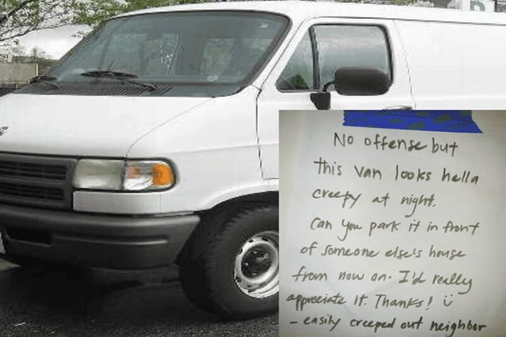 Um aviso de bairro sobre uma van suspeitamente estacionada não hesita em apontar sua presença assustadora.