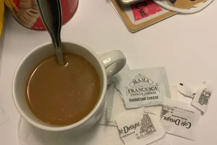 To be fair, those little white packets do look dangerously similar at a glance. When your brain’s still booting up, it’s easy to grab the wrong one and hope for sweetness, only to get a mouthful of powdered pasta topping instead. Hopefully, next time they double-check the label before turning their coffee into an Italian entrée.