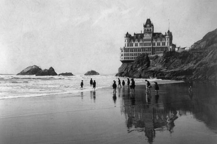 Apelidada de “Palácio de Gingerbread”, esta mansão vitoriana de sete andares tinha vista para o oceano. Ela sobreviveu ilesa ao terremoto de 1906.