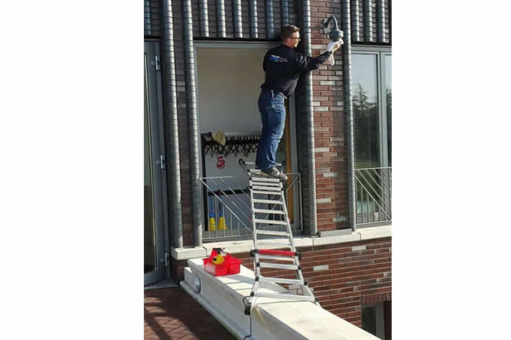 His left hand clings to a lamp (goal: install), while his right hand clutches existential dread (goal: not plummet). Nearby, a red toolbox labeled ‘Overcomplicated Optimism’ spills screws like confetti at a circus. Will he conquer gravity or become the world’s most ironic wall decoration? Stay tuned—for now, his selfie game’s lit from below.
