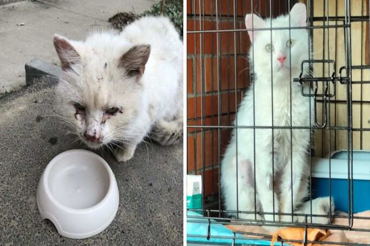 #5 Before And After In One Week. My Recent Rescue – White Cat With Diaphragmatic Hernia. Twp Days Ago He Had A Surgery And He Had Only 10% Chance To Survive. And He Sucessed