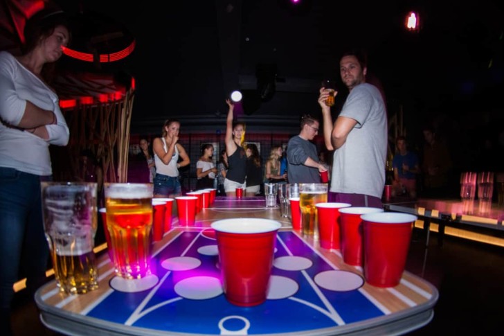 Mettez en place deux équipes aux extrémités opposées d’une longue table, avec des gobelets de bière disposés en triangles. Les joueurs lancent tour à tour des balles de ping-pong, en essayant de les faire atterrir dans les gobelets de l’adversaire – si vous y parvenez, ils boivent ce gobelet et le retirent du jeu.