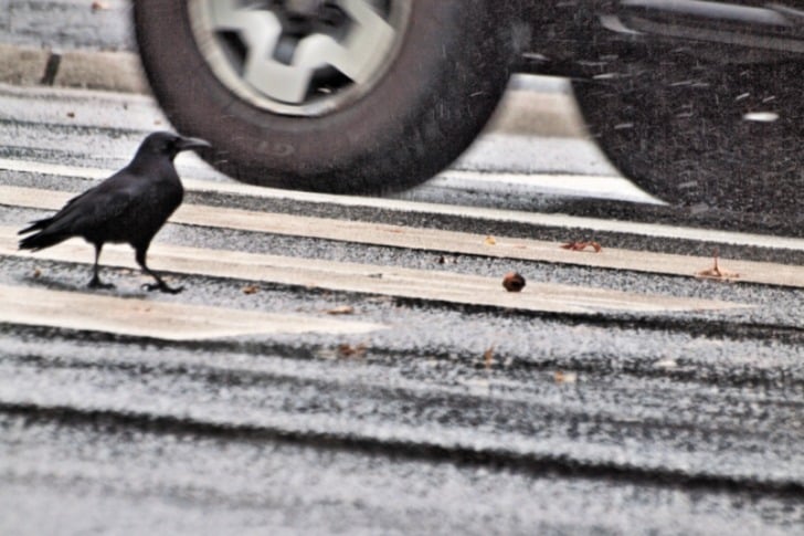 Watching a crow drop nuts on the road so cars would crack them open, then waiting for the traffic light to turn red so it could safely walk out and eat them.