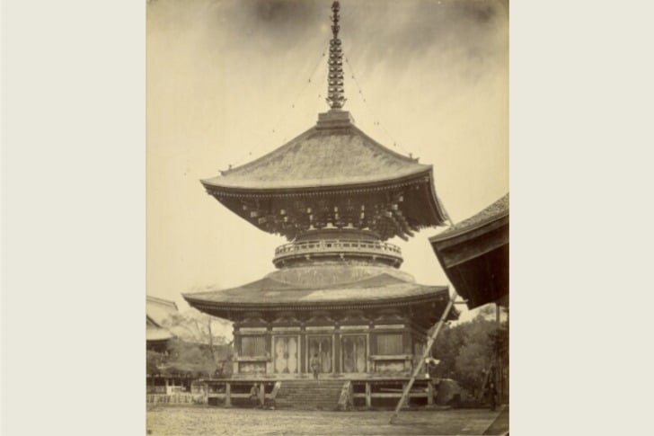 The Meiji government’s 1868 policy to separate Shinto and Buddhism led to its dismantling in the early 1870s. Deemed a Buddhist intrusion in a Shinto site, its removal was part of broader anti-Buddhist reforms aimed at purifying religious spaces.