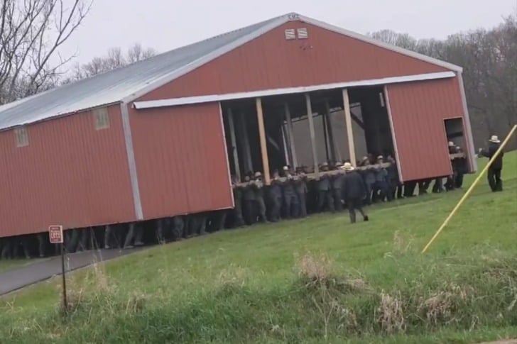 #13 Eine ganze Menge Amischer Männer, die eine Scheune versetzen