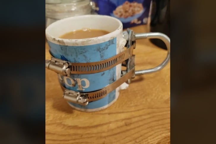 Solide Reparatur, aber ich würde meine Lippen nicht an diese dreckige Tasse legen 🤢