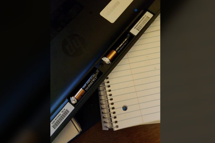 #40 Wenn Ihnen die AA-Batterien für irgendetwas ausgehen, können AAA-Batterien und ein kleines zerknülltes Aluminiumfolie-Kügelchen einen guten Ersatz darstellen