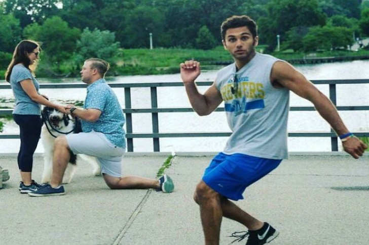 #4 這位慢跑者意識到他誤闖朋友訂婚照的瞬間