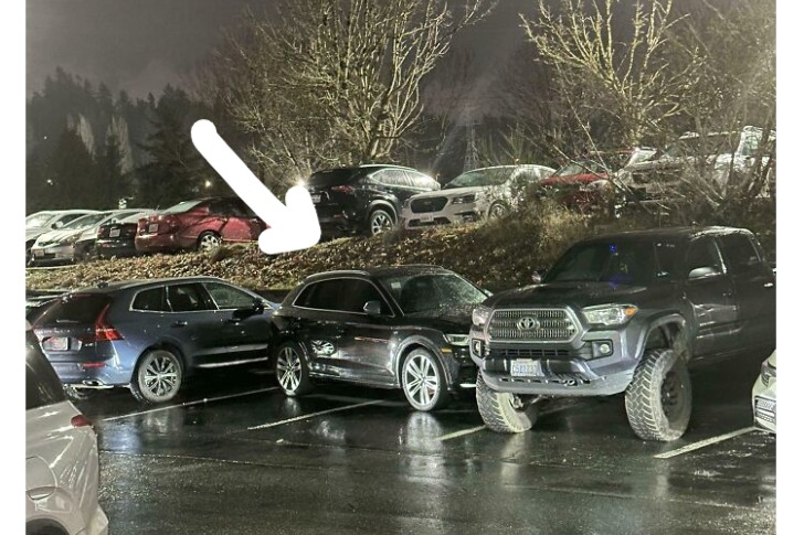Schlechtes Parken: Nimmt mehrere Plätze auf einem vollen Parkplatz ein. Ziemlich egoistisch, oder? Lässt andere frustriert im Kreis fahren.