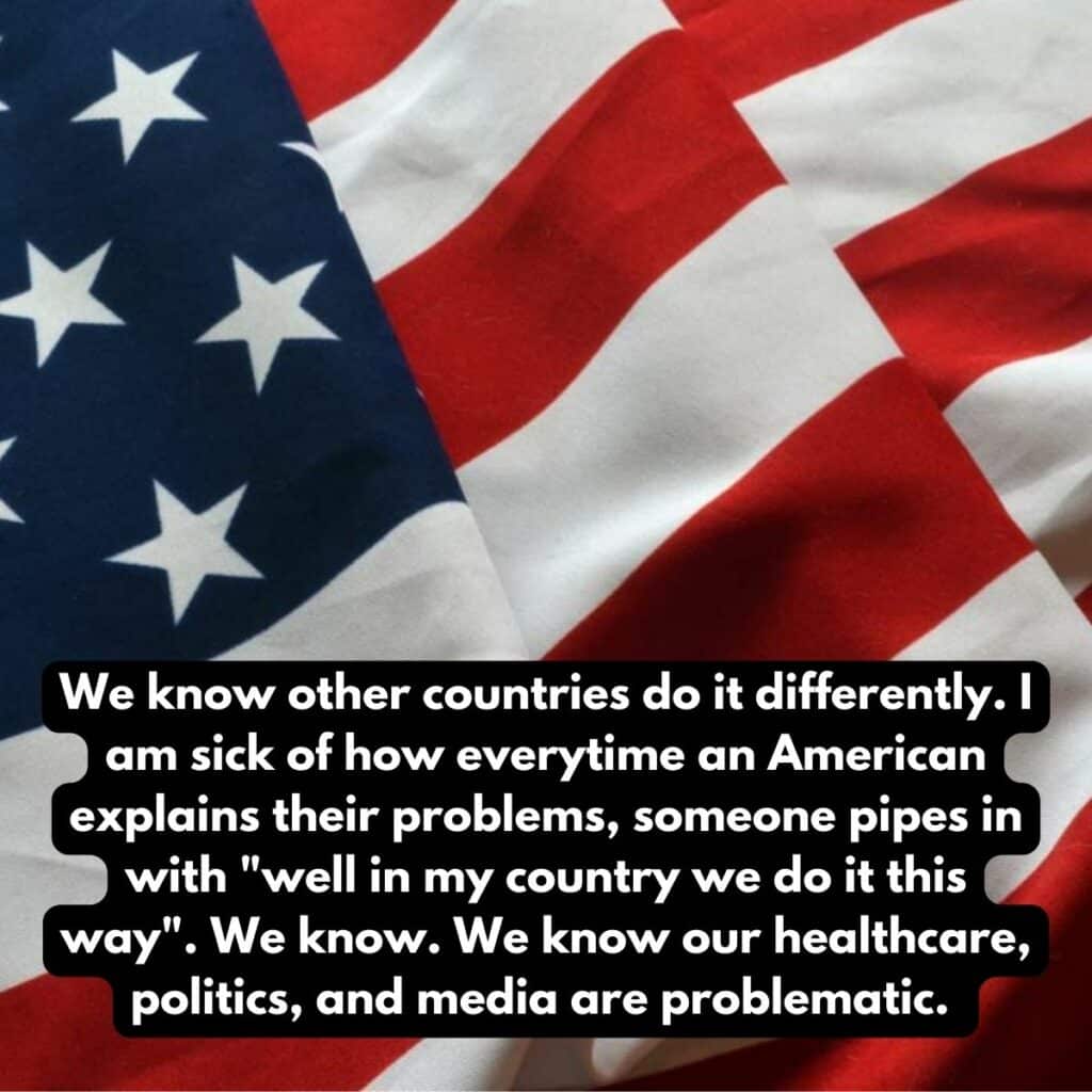 Nós entendemos; o seu país também é ótimo. Mas podemos apenas focar na questão em questão? E não me entenda mal, adoramos aprender sobre diferentes culturas e formas de fazer as coisas de outros lugares. Mas às vezes, parece que as pessoas estão tentando superar umas às outras.