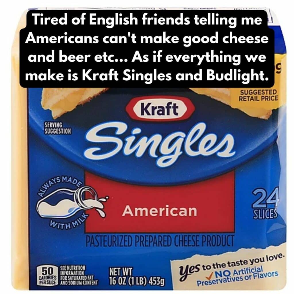 Es como si los europeos pensaran que solo comemos hamburguesas y perritos calientes mientras bebemos cerveza de un vaso rojo Solo. Claro, puede que no tengamos siglos de tradiciones cerveceras y queseras como los europeos, pero eso no significa que no podamos defendernos. ¿Acaso han oído hablar de nuestras cervecerías artesanales y queserías gourmet?