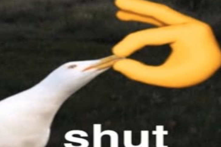 This meme features a seagull being silenced by a cartoon “OK” hand gesture, with the text “shut.” It’s a playful way to tell someone to stop talking, especially when they’re being annoying or saying something stupid. The absurdity of a seagull being told to “shut up” makes it a lighthearted yet effective way to end a conversation.