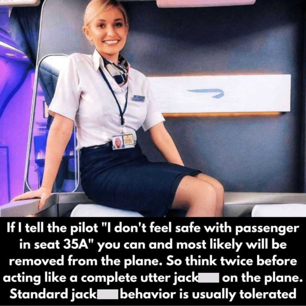 Creo que la gente olvida que volar en un avión no es un derecho; estás en un vehículo privado propiedad de una empresa privada, y si creen que tu yo ruidoso y borracho va a causar un problema, están en todo su derecho de decir: “No importa, no te queremos en nuestro avión”. Así que quizás deberías vigilar tu comportamiento cuando estés en un avión.