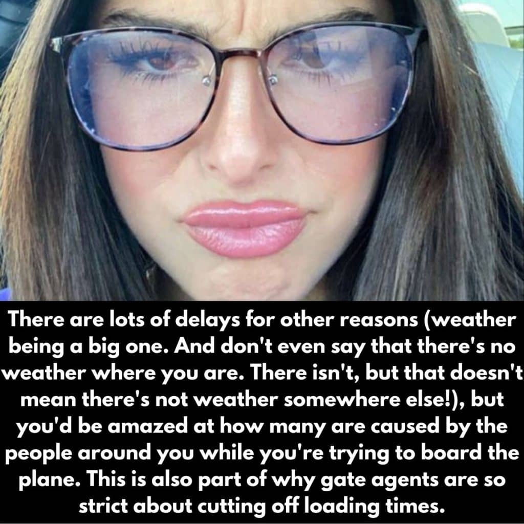 Pero ese no es necesariamente el caso. Los retrasos suelen ser cosas que están fuera del control de la aerolínea. Después de todo, no pueden evitar que haya mal tiempo sobre el JFK. Peor aún es cuando es culpa de alguien en el vuelo haciendo algo estúpido. Así que no te enfades con el pobre personal de la aerolínea. ¡Nunca te hicieron nada, y ciertamente no intencionalmente!