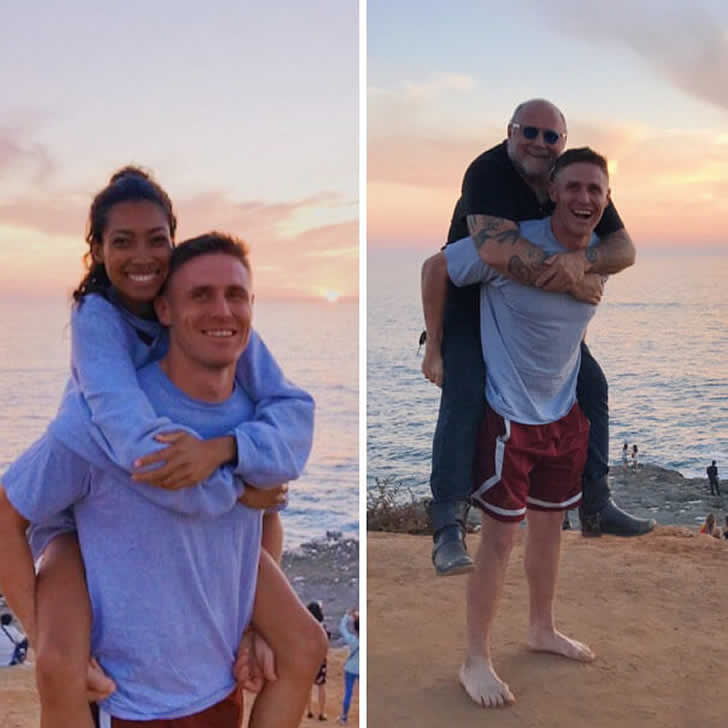 It all started with a woman wanting a cute piggyback photo from her friend in the blue shirt while they enjoyed the beach. But things took a fun turn when a stranger on a bike, watching the sunset nearby, asked if he could join in. Without missing a beat, the man in blue said yes, and soon they were all laughing, sharing the moment together.