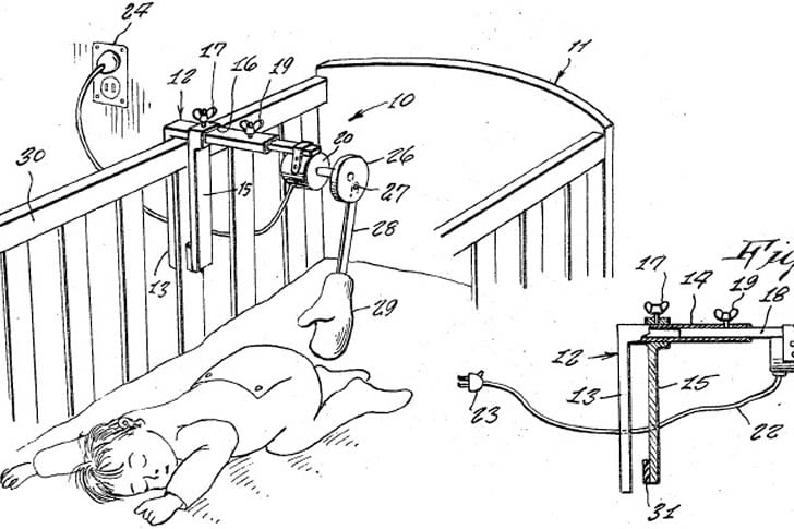 Im Jahr 1963 wurde ein mechanisches Kinderbett entwickelt, das „die Berührung einer Mutter simulieren“ sollte, indem es den Rücken des Babys mit zwei weichen Gummihänden tätschelte. Die Maschine wiegte das Baby, während die Hände alle paar Sekunden sanft auf seinen Rücken klopften, um beim Bäuerchen und zur Beruhigung zu helfen.
