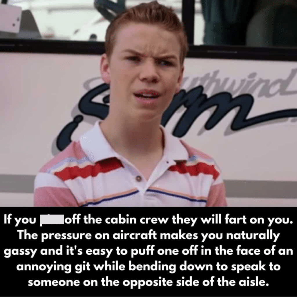 Mas agora estou ainda mais motivado para me certificar de que não faço nenhum comissário de bordo ficar zangado. Pessoalmente, não quero que ninguém, tripulação de cabine ou não, solte gases em mim ou perto de mim. Então terei o cuidado extra de não lhes dar nenhuma razão para se irritarem comigo. Obrigado por esta dica! Também me confortarei sabendo que aqueles passageiros incrivelmente irritantes são tratados da maneira certa.