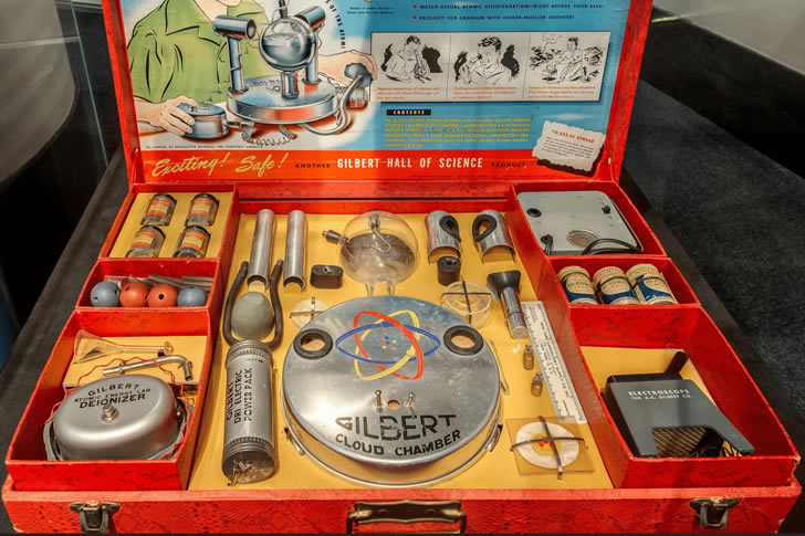 In the 1950s, the Gilbert U-238 Atomic Energy Lab promised kids a glimpse into the mysterious world of nuclear physics. This “educational” toy included real radioactive uranium ore samples, a Geiger counter, and even a cloud chamber to observe radiation tracks. The idea was to inspire young scientists by letting them experiment with “atomic energy” at home.