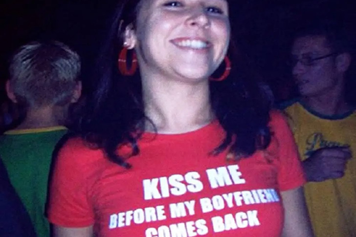 Dieses Mädchen macht klar, wie sie über ihre aktuelle Beziehung denkt: “I kiss a lot of boys and I forget who they are” – eine provozierende Botschaft, die vermutlich ihren Freund zum Flüchten bringt. Ein Foto in diesem Shirt = instant Branding als “Serienküsserin”.