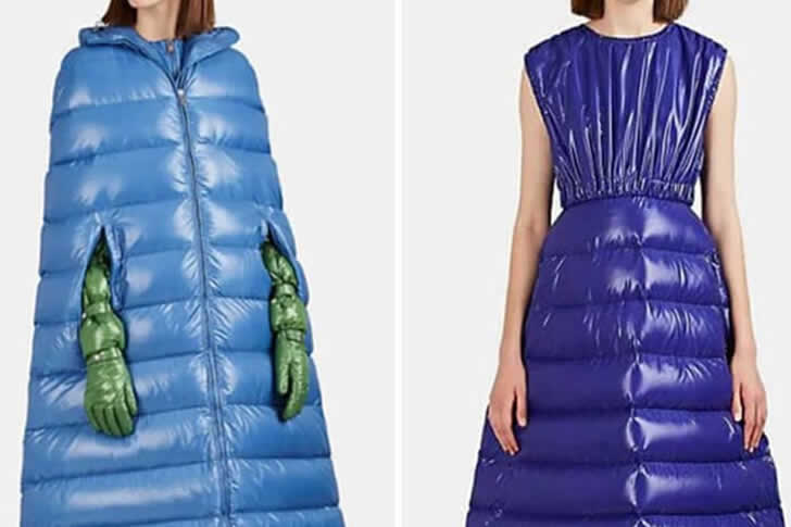 Obwohl diese Stücke Sie wahrscheinlich unglaublich warm halten, sind sie für alles andere als stilles Stehen etwas unpraktisch. Stellen Sie sich vor, Sie versuchen, einen Kaffee zu holen, während Sie einen buchstäblichen Schlafsack tragen! Es ist eine urkomische Erinnerung daran, dass man in der Welt der High Fashion manchmal einen hohen Preis zahlen muss, um wie ein sehr teures Stück Outdoor-Ausrüstung auszusehen.