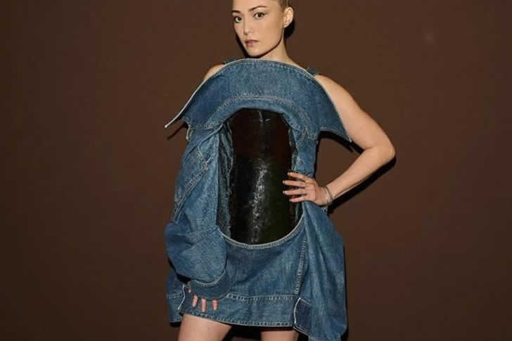 Während es beim Avantgarde-Stil darum geht, Regeln zu brechen, scheint diese Jacke ihre eigene strukturelle Integrität gebrochen zu haben. Es fühlt sich weniger wie ein Laufsteg-Meisterwerk an und mehr wie ein DIY-Projekt, das nach zu vielen Craft-Cocktails auf urkomische Weise schiefgelaufen ist. Man muss das Pokerface des Models bewundern; es ist schwer, ernst auszusehen, wenn man im Wesentlichen einen Denim-Hula-Hoop um den Oberkörper trägt!