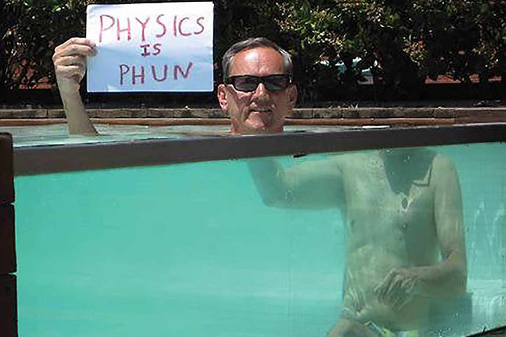 Auch wenn Urlaube eigentlich eine Auszeit von der Schule sein sollten, machen wir hier mal eine Ausnahme, weil das einfach zu witzig ist. Der Mann auf dem Bild tut entweder in seiner Freizeit so, als wäre er der kopflose Reiter, oder er zeigt, dass er wirklich versteht, wie Licht im Wasser gebrochen wird. Diese kreative Art, es zu zeigen, ist eine wirklich interessante und lustige Art, ein wissenschaftliches Konzept zu erklären!