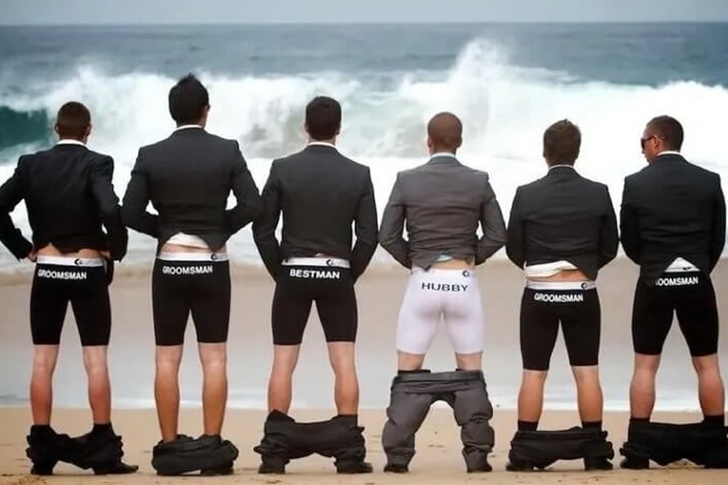 Für Freunde eine lachhaft-crazy Idee, für Außenstehende ein “WTF?-Moment”: Als der Fotograf “Hosen runter!” schrie, zogen die Jungs ihr Statement durch – Boxershorts included. Der Bräutigam hatte sicher Spaß, aber seine Braut dürfte später ein paar Erklärungen verlangt haben.
