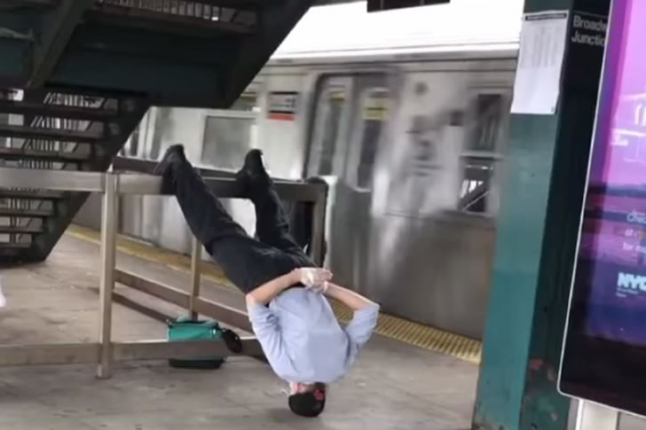 Am amüsantesten ist die völlige Gelassenheit des Mannes, als wäre dies sein tägliches Ritual der Besinnung vor dem Pendeln. Die Gegenüberstellung seines ruhigen Auftretens mit der absurden Position verwandelt die Szene in ein perfektes Stück unbeabsichtigter Komödie. Ob es eine Wette, eine Aufführung oder einfach nur eine wirklich seltsame Art war, sich die Zeit zu vertreiben, es verwandelt eine gewöhnliche U-Bahn-Plattform in ein urkomisches Tableau unerwarteter Kreativität.