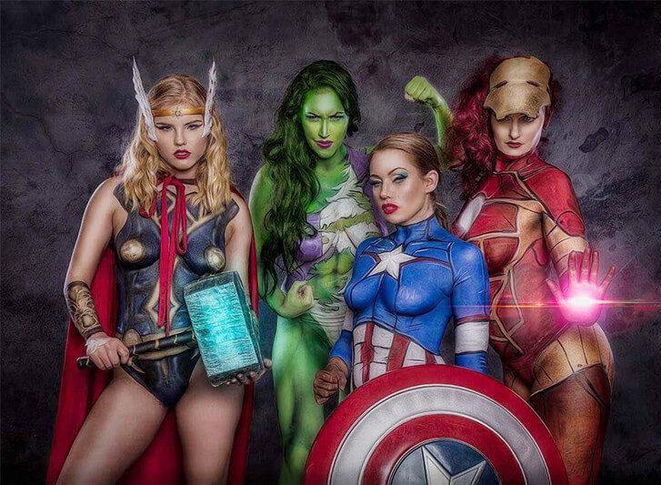 Diese Damen haben sich als Mitglieder der Avengers verkleidet, der Superheldengruppe aus den Marvel-Comics. Obwohl die Charaktere in den Comics ursprünglich männlich sind, ist es erfrischend, eine alternative Darstellung zu sehen.