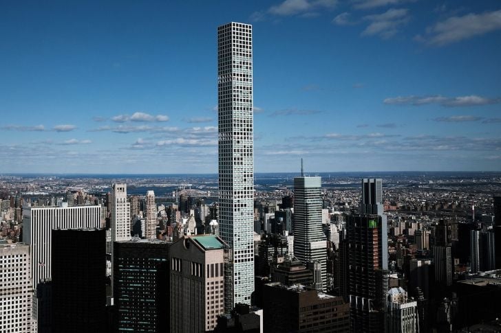 Mit einer Höhe von425,7 Meternund85 Stockwerkenwurde dieser schlanke „Bleistiftturm“2015inNew York City, USA, fertiggestellt.