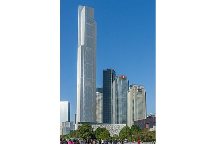 Als höherer der Guangzhou Twin Towers zeichnet er sich durch eine Terrakotta-Fassade und einige der schnellsten Aufzüge der Welt aus.