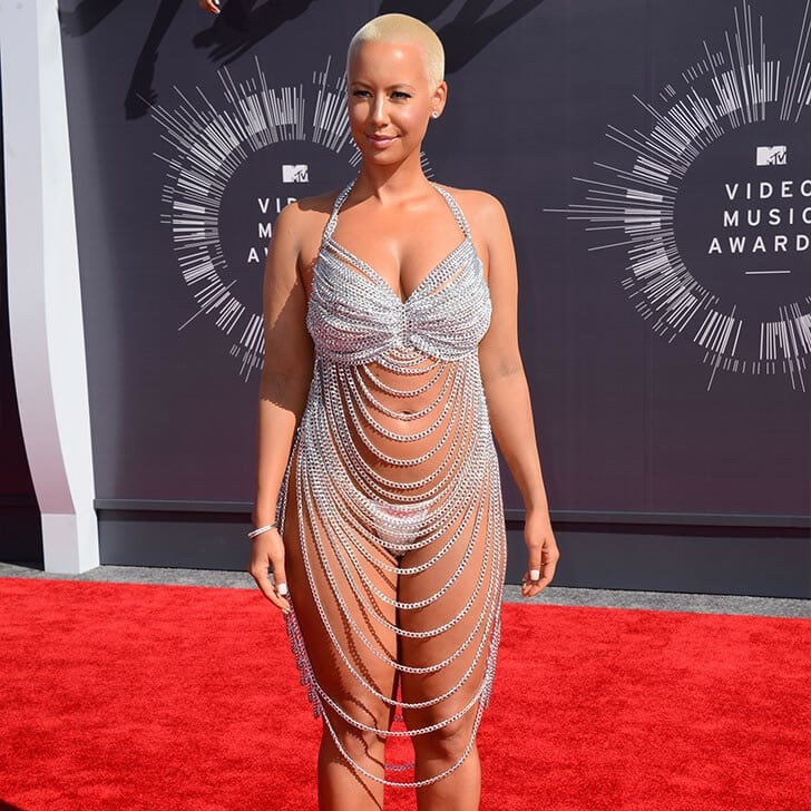 Bei den MTV VMAs 2014 sorgte Amber Rose mit ihrem gewagten und unvergesslichen Look für Furore auf dem roten Teppich. Das Model und die Schauspielerin zogen alle Blicke auf sich in einem atemberaubenden Kettenhemdkleid von Laura Dewitt. Das metallische Kleid betonte ihre Kurven und ließ wenig der Fantasie übrig, wodurch sie auf kühne Weise Körperpositivität und Selbstbewusstsein zum Ausdruck brachte.