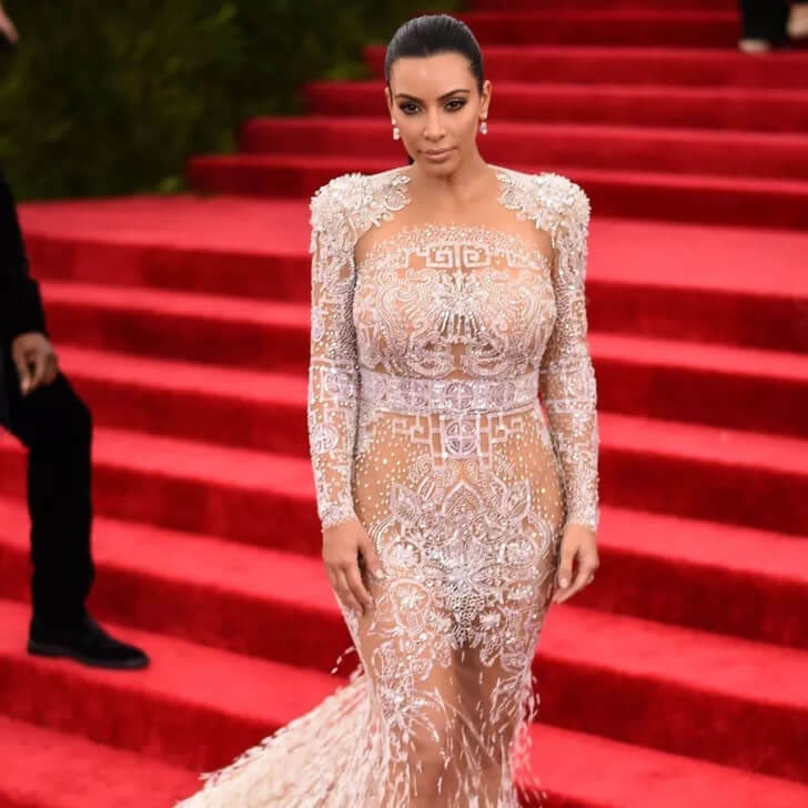 Kims gewagter, tiefer Ausschnitt und kühne Cutouts verliehen dem Vintage-inspirierten Look einen Hauch von moderner Schärfe. Ob man es liebt oder hasst, ihr Met Gala-Kleid von 2015 war unbestreitbar ein aufsehenerregender Moment im Modeuniversum.